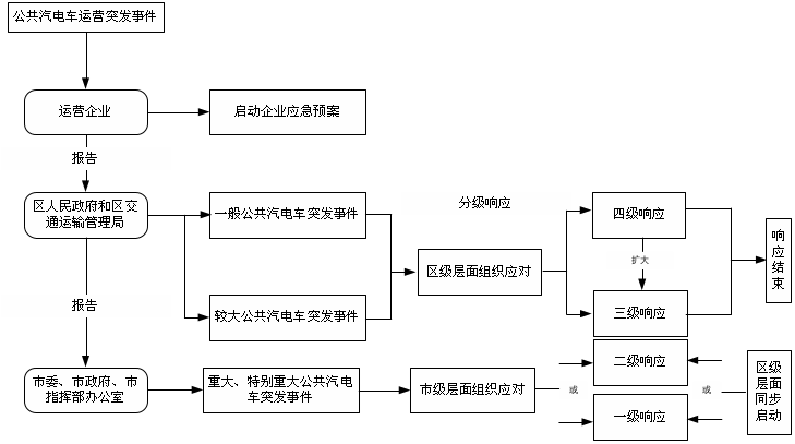 (1)当国家、市人民政府启动一级、二级响应并成立国家或市应对城市公共汽电车突发事件现场指挥部时,区指挥部受上级指挥机构统一指挥,按照要求做好各项应急处置工作。