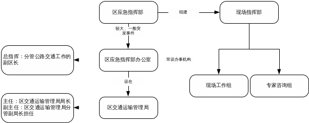 ②成立区应对突发事件指挥部(指挥部名称根据事件时间、类别确定),总指挥由分管交通运输工作的副区长担任。根据实际情况,设副总指挥2至3名。指挥部一般下设现场处置、信息舆情、医疗救援、治安维护、战勤保障、事故调查等工作组,由区有关负责同志任组长。现场指挥部组织实施抢险救援和应急处置工作,并向市委、市政府、市指挥部办公室报告。